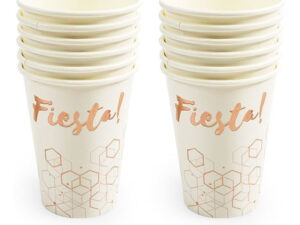 Pack 12 Uds Vaso De Cartón Con Diseño Blanco / Rosa Gold