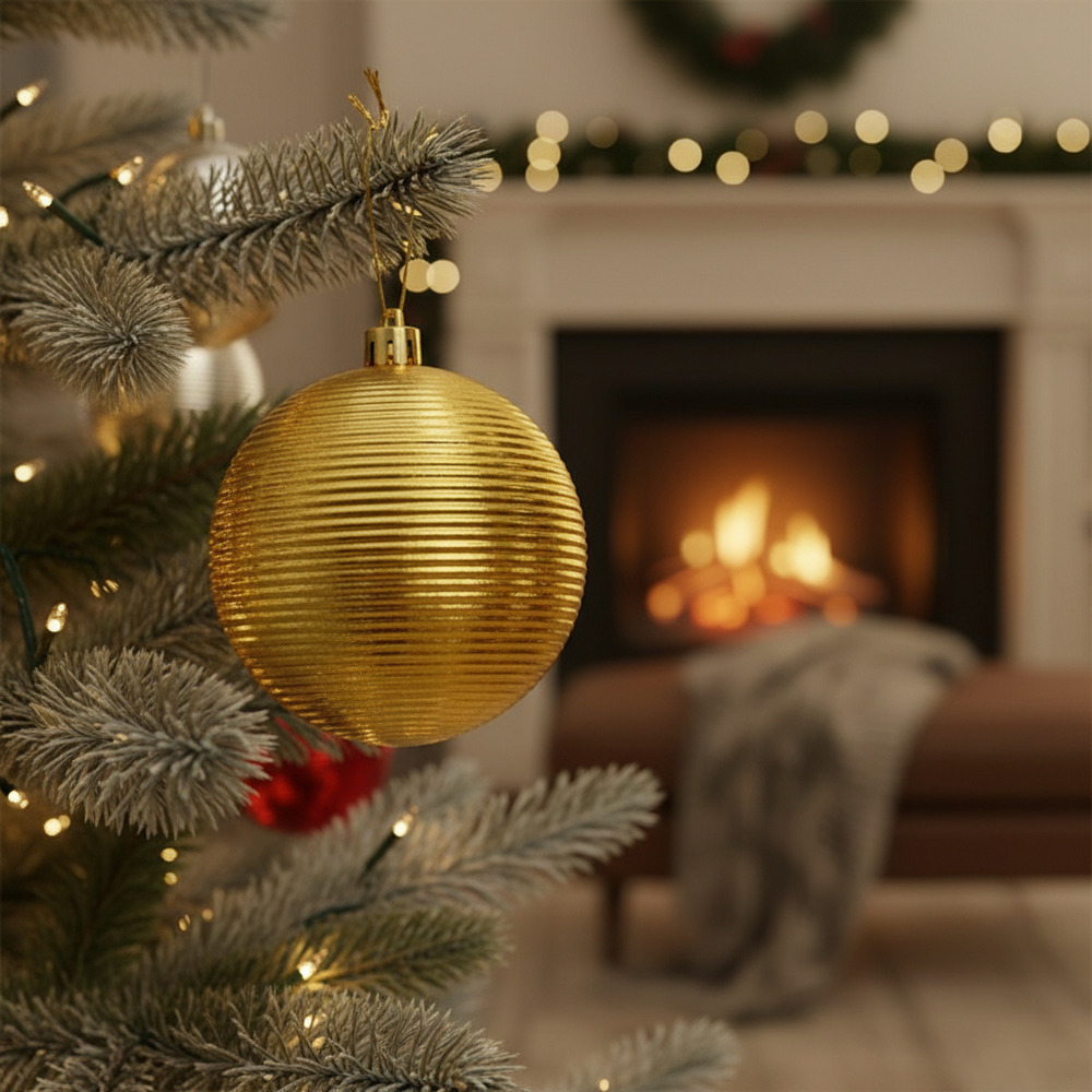 Acabado: Alto brillo metálico en cada color, lo que maximiza el reflejo de las luces del árbol.