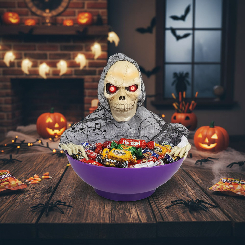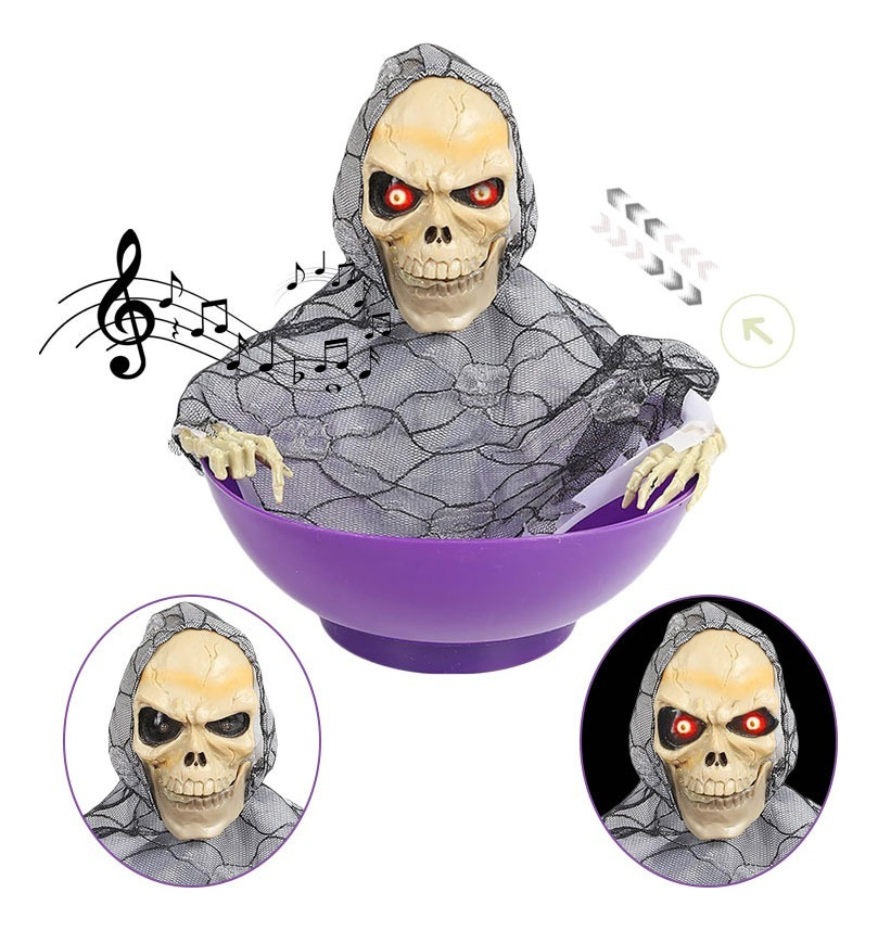 Candy Bowl Para Dulces – Diseño Calavera – Decoración Fiesta Halloween Con Luz, Sonido y movimiento.