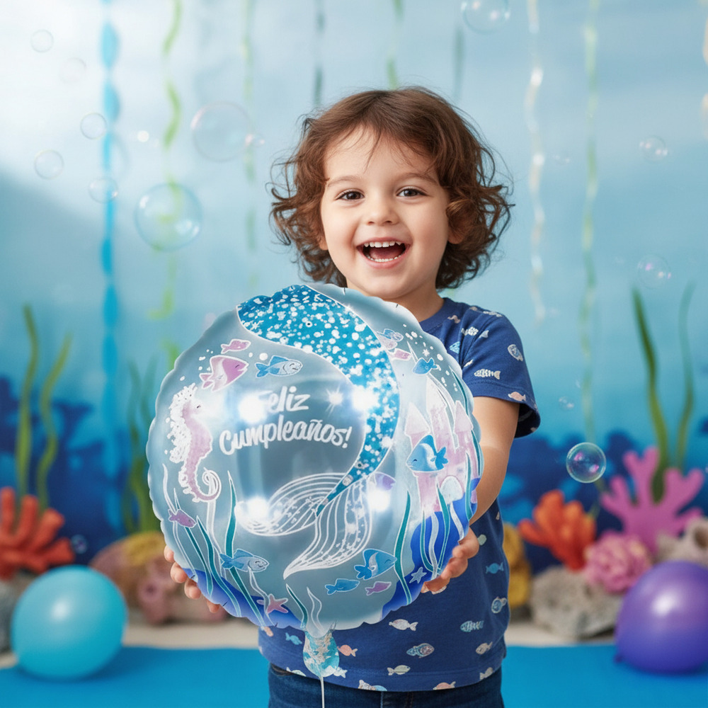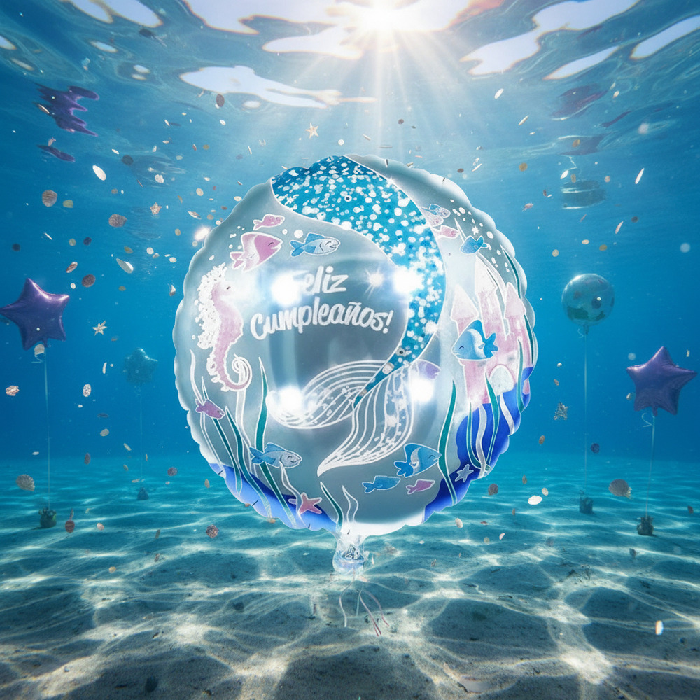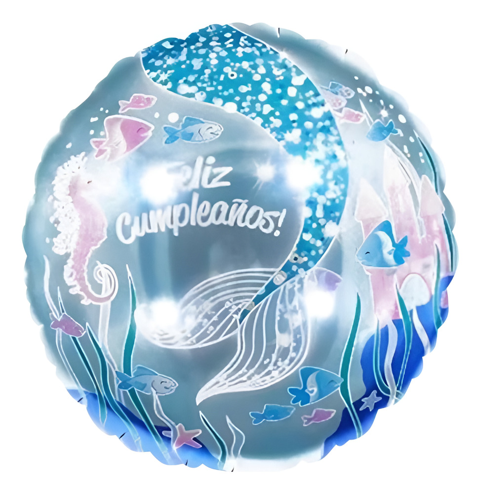 Globo Metálico Circular Sirena – Feliz Cumpleaños