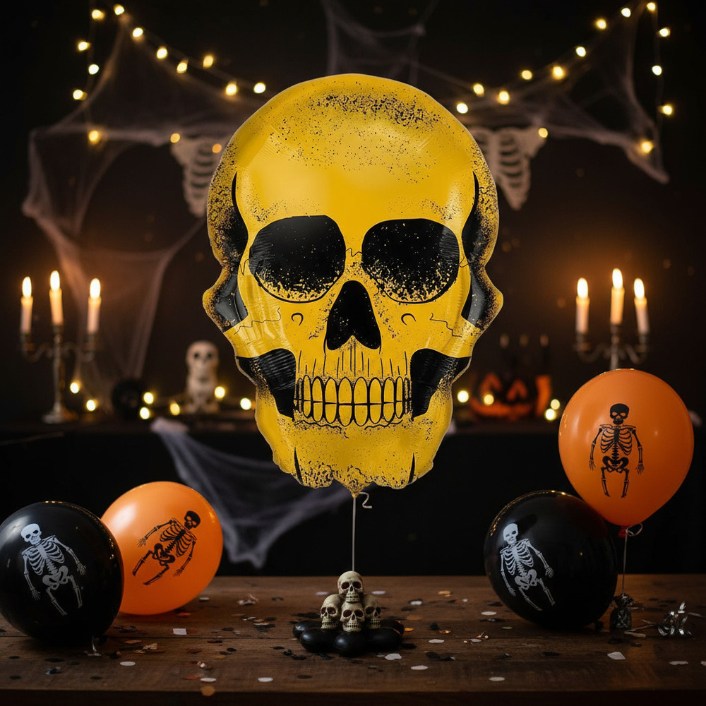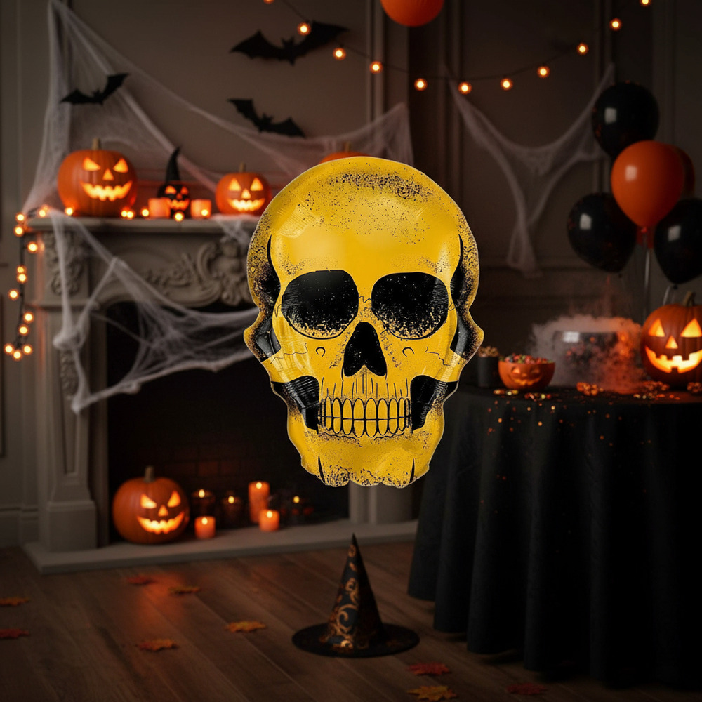 Globo Metálico Para Decoración Calavera Dorada / Halloween