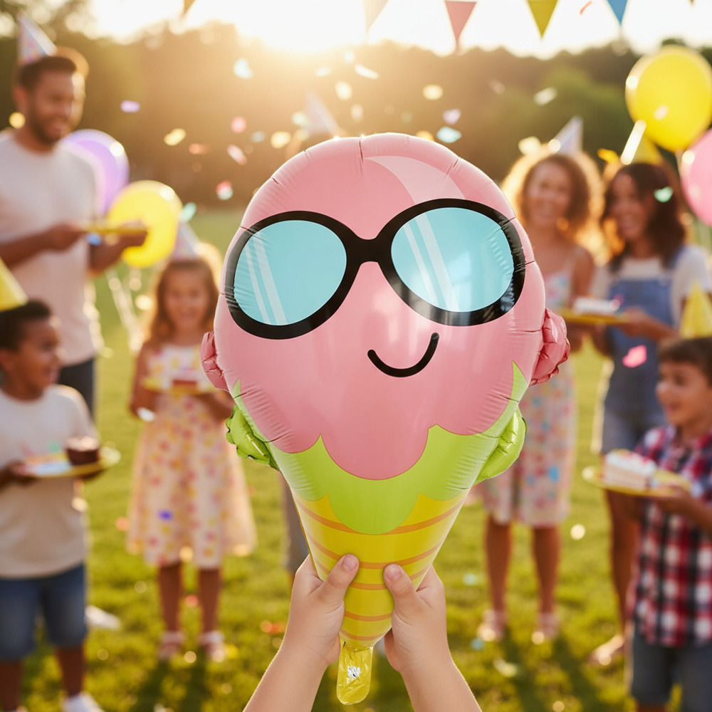 Globo Metálico Silueta De Cono De Helado Con Lentes De Sol