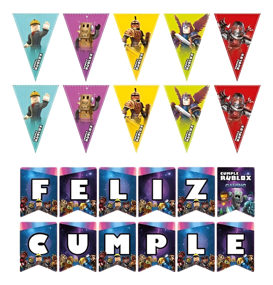 Guirnalda Frase Feliz Cumple + Triángulos / Motivo Roblox