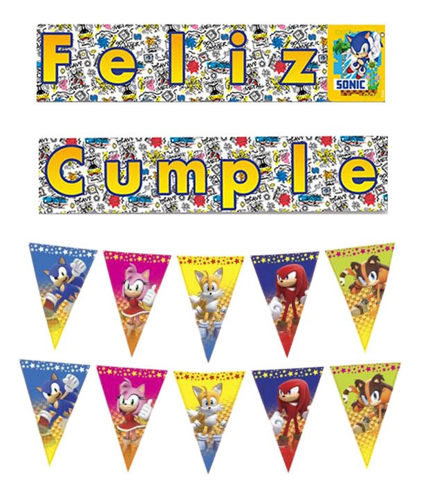Guirnalda de Papel (Diseño Sonic) Frase Feliz Cumpleaños