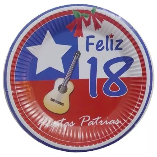 Pack 10 Uds Plato Grande Cartón / Diseño / Fiestas Patrias