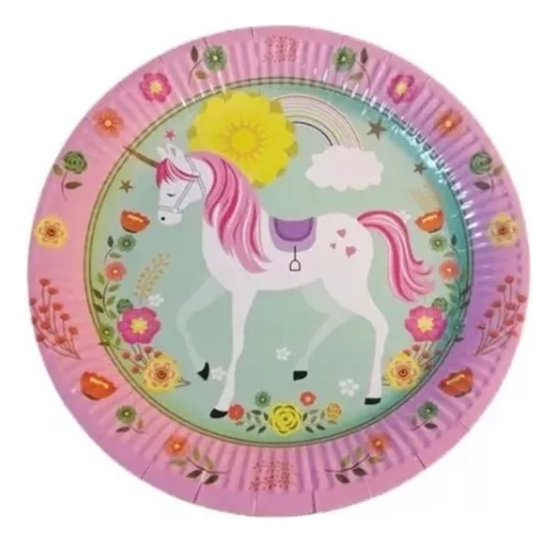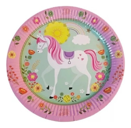 Pack 10 Uds Plato Grande Cartón / Diseño Unicornio