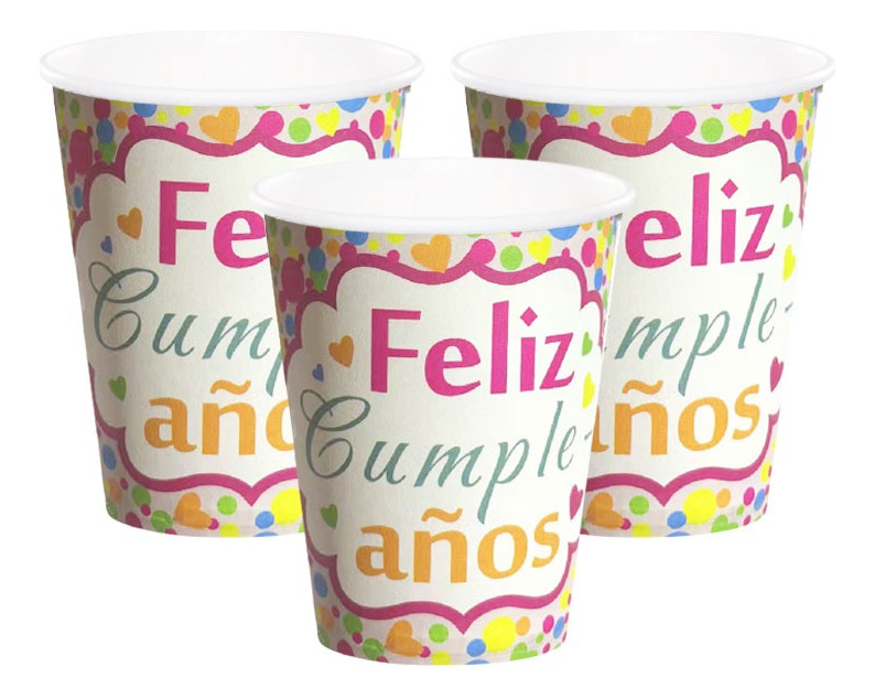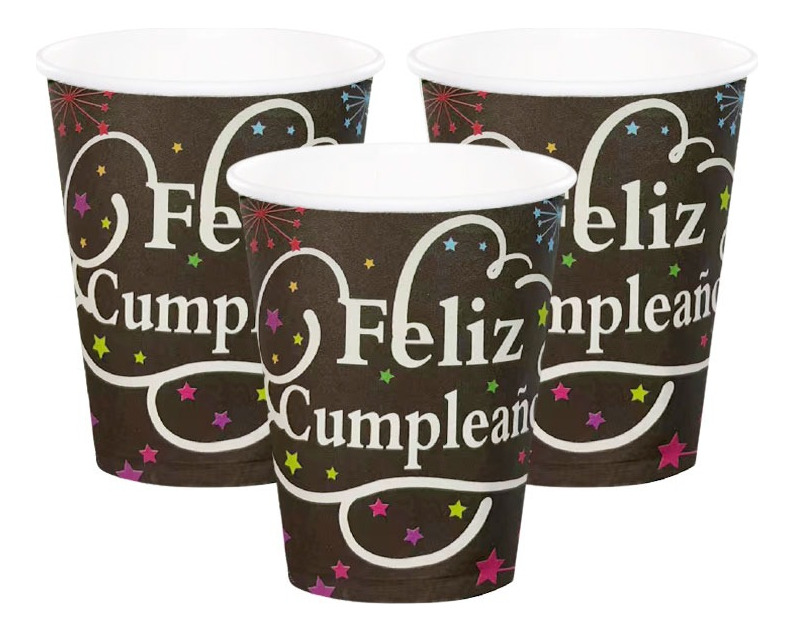 Pack 10 Uds Vaso De Cartón Con Frase Feliz Cumpleaños