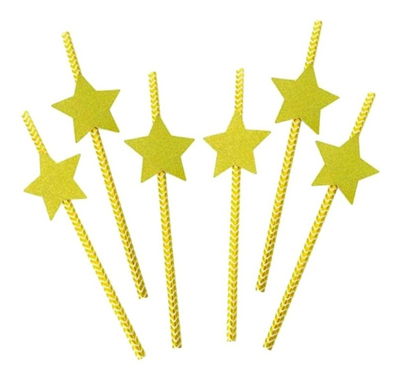 Pack 6 Uds Bombillas De Papel Con Diseño Estrella