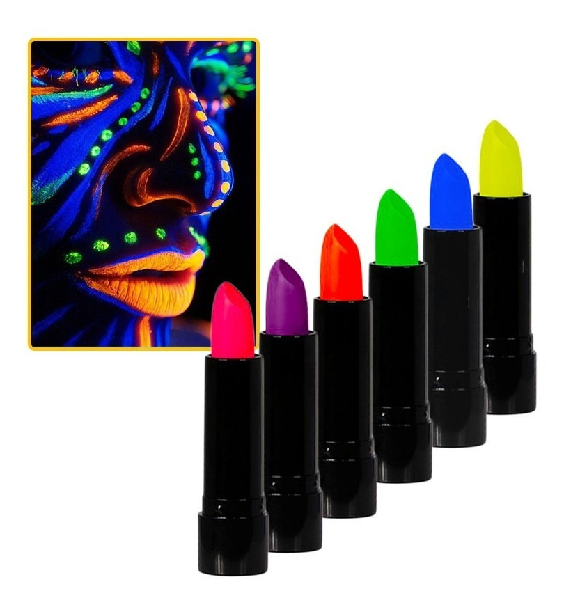 Pack 6 Uds Lápiz Labial Decoración Fiesta Flúor Fluorescente