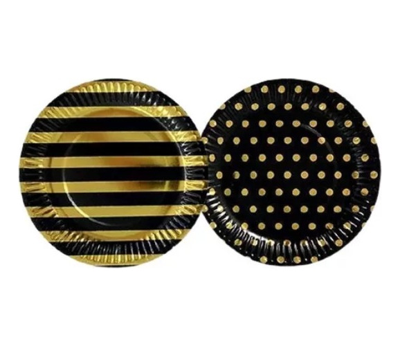 Pack 6 Uds Plato Grande Cartón / Diseño Golden Black