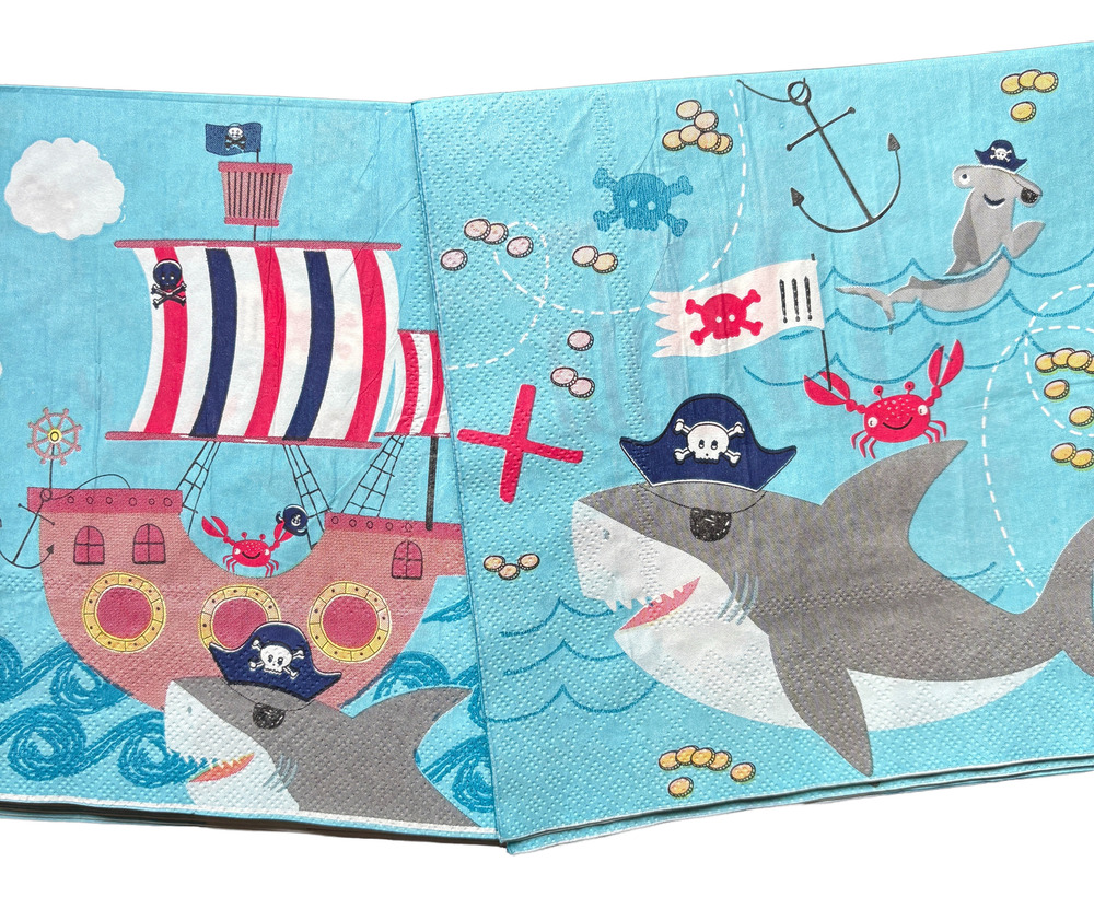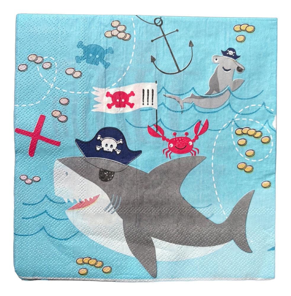 Servilletas de papel para decoración con diseño pirata / Pirata tiburón (Tienen un diseño por un lado y por el otro lado el otro diseño)