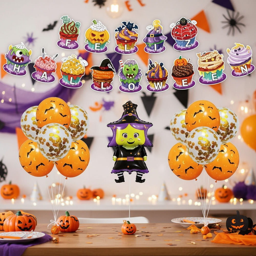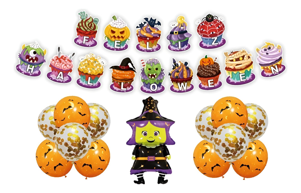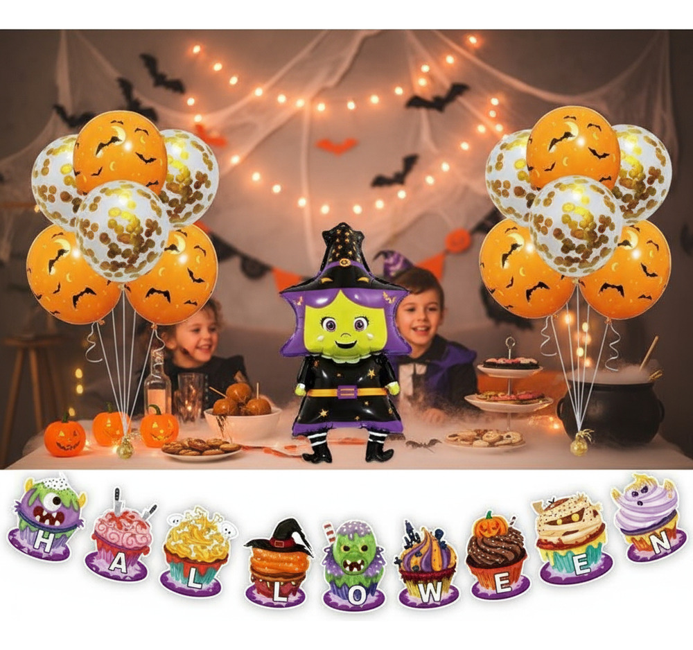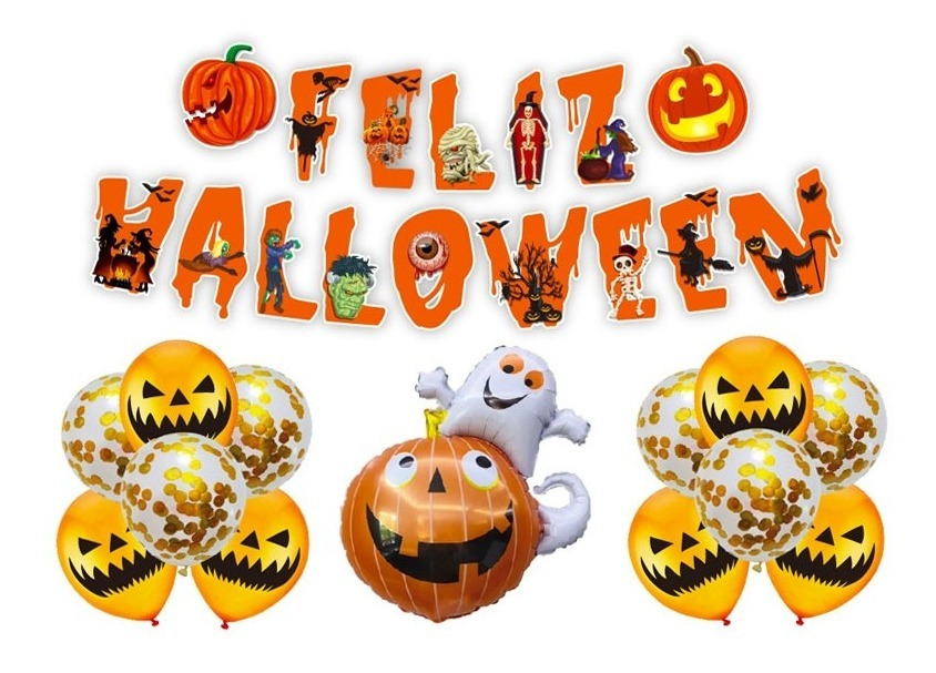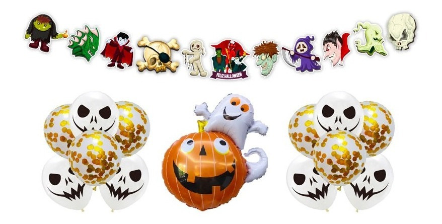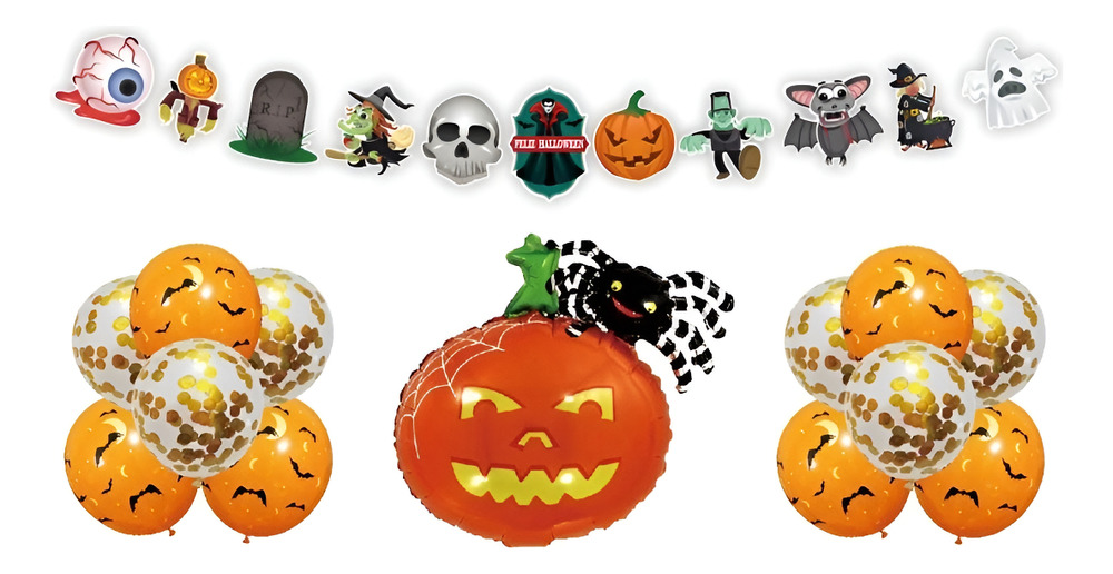 Set De Globos Decoración 13 Uds Motivo Halloween + Guirnalda