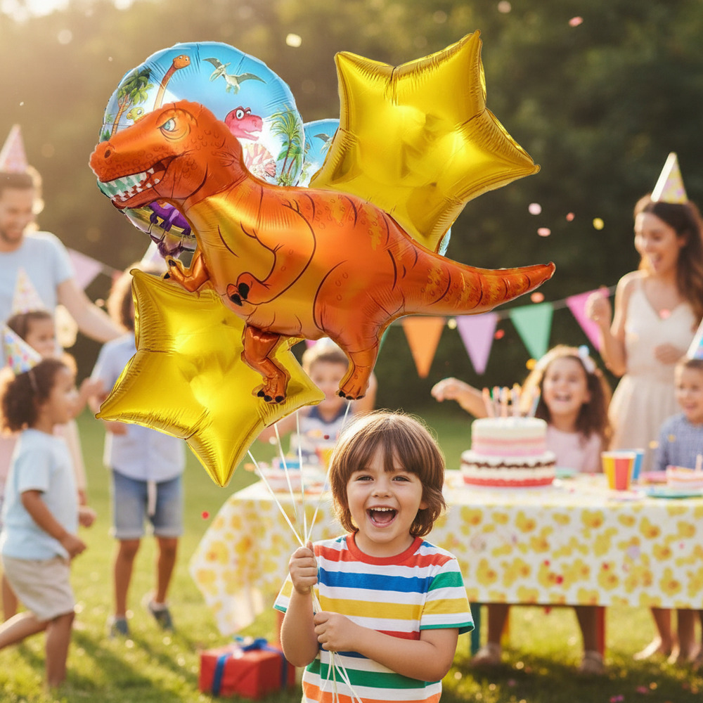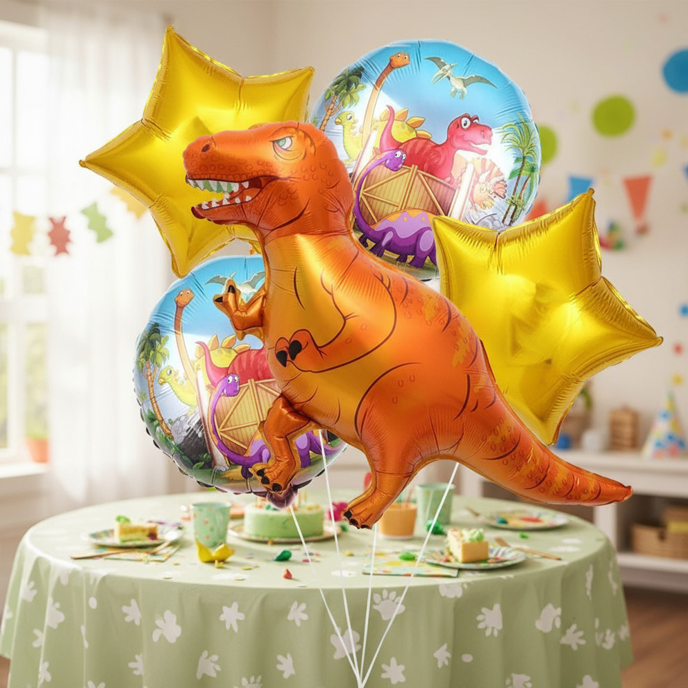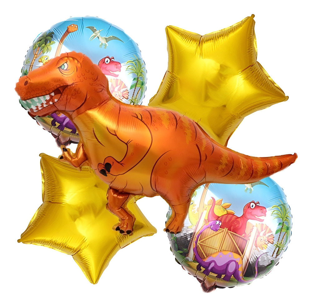 Set de Globos Decoración 5 Uds Dinosaurio Rex – Naranja / Estrellas / Círculos
