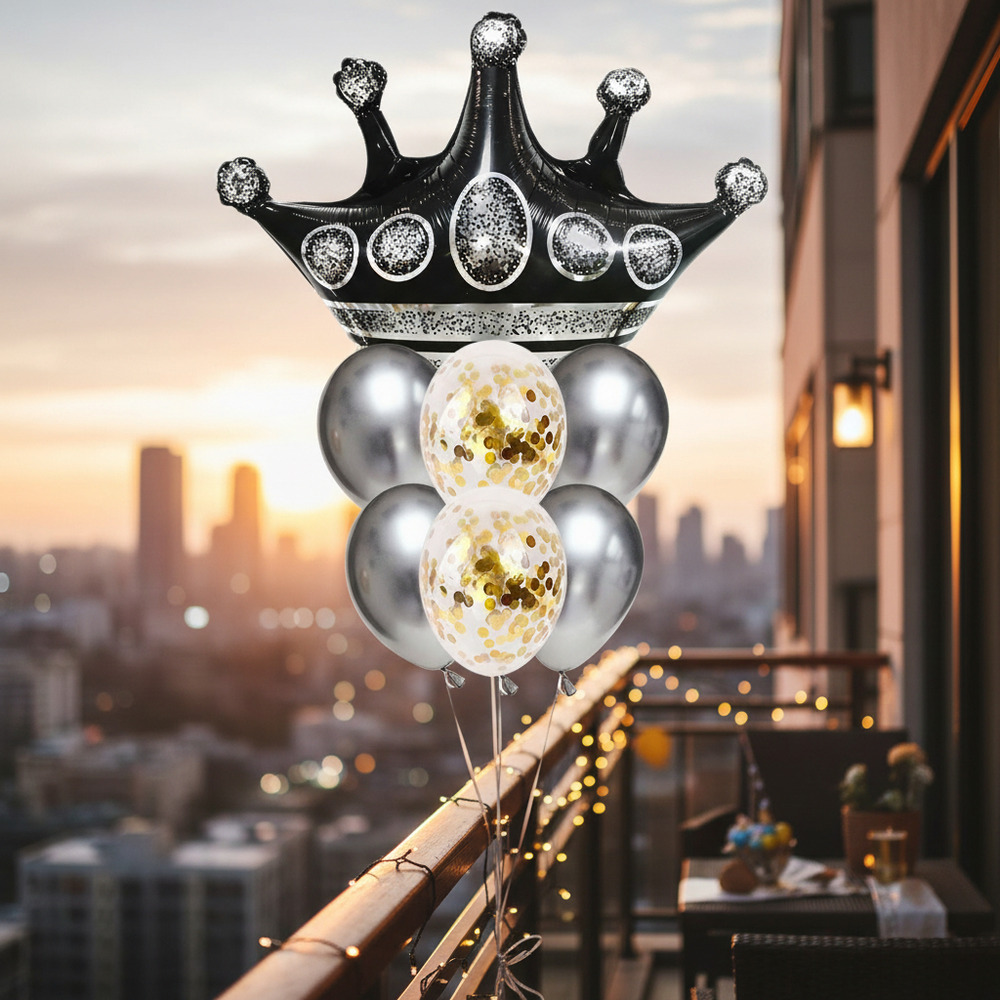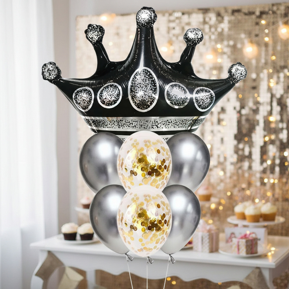 Set De Globos Decoración 7 Uds Corona Negra + Globos Látex