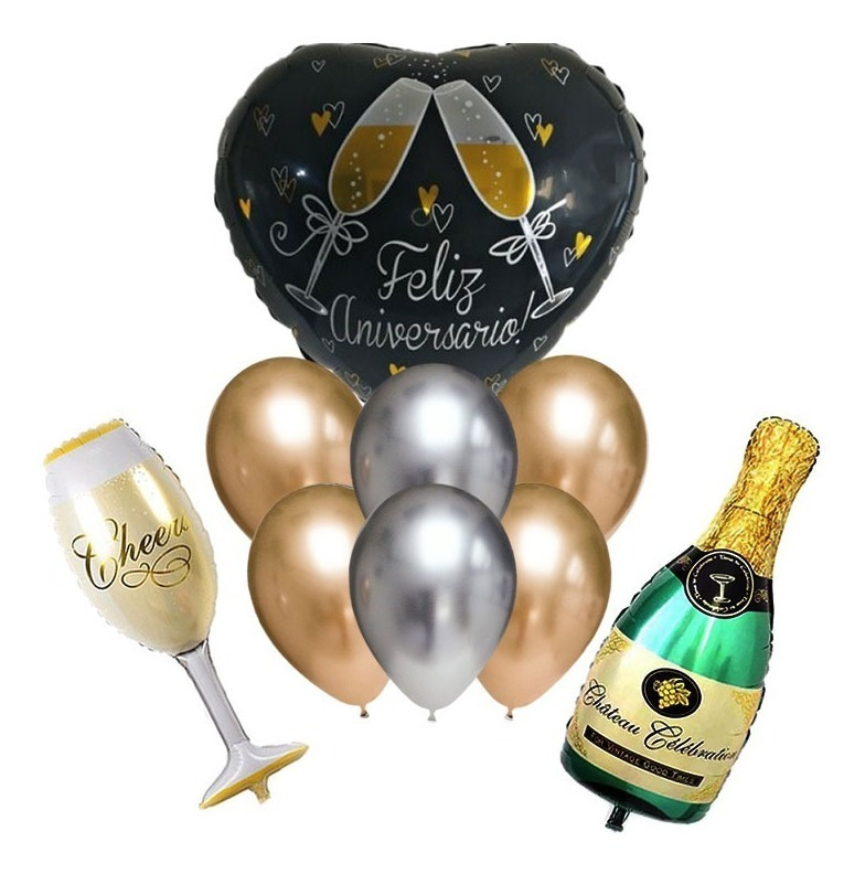 Set De Globos Decoración 9 Uds Corazón ( Feliz Aniversario )