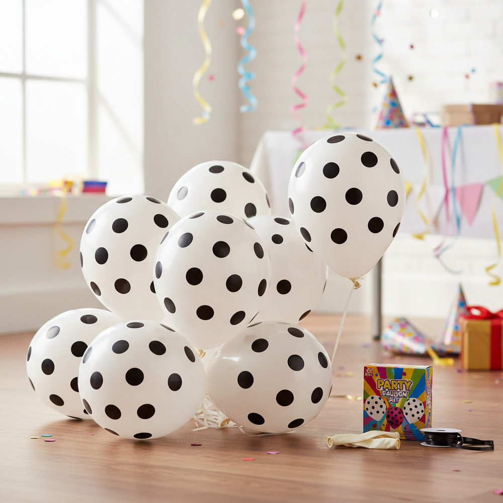 Set Globos Decoración 25 Uds Con Lunares ( Puntos Negros )