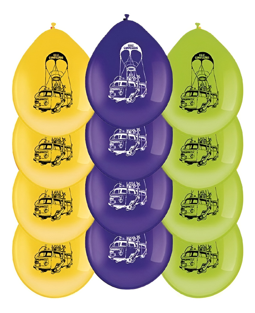 Set Globos Látex 12 Uds Autobus Feliz Cumpleaños