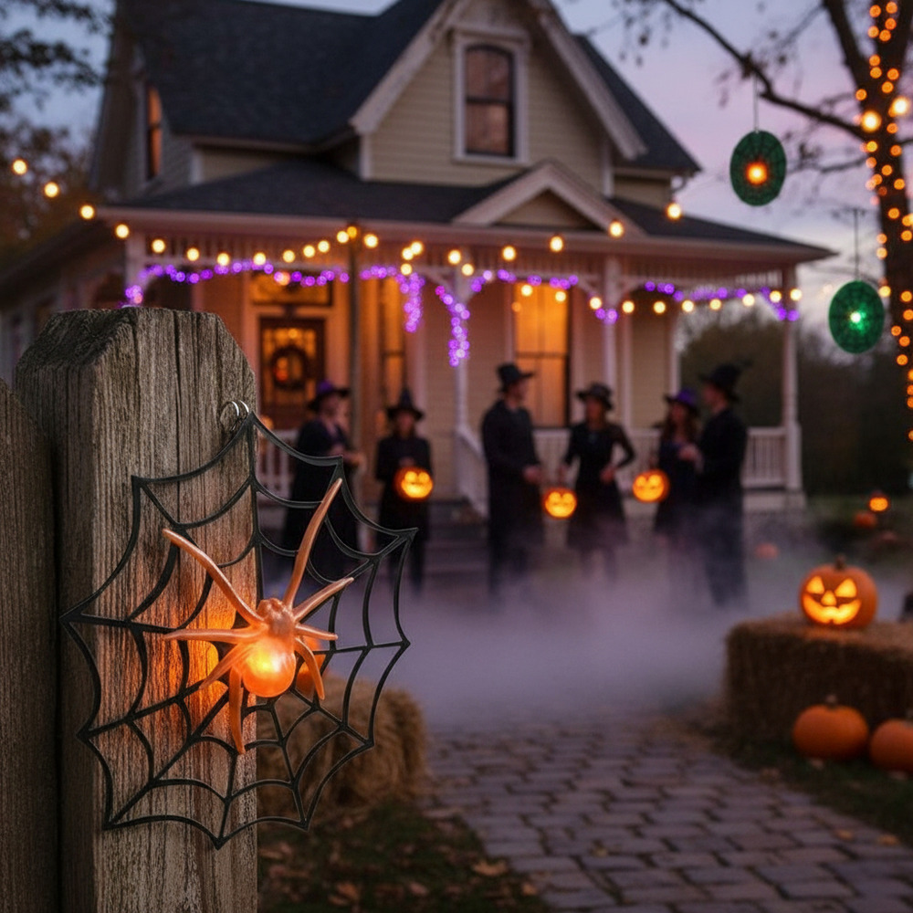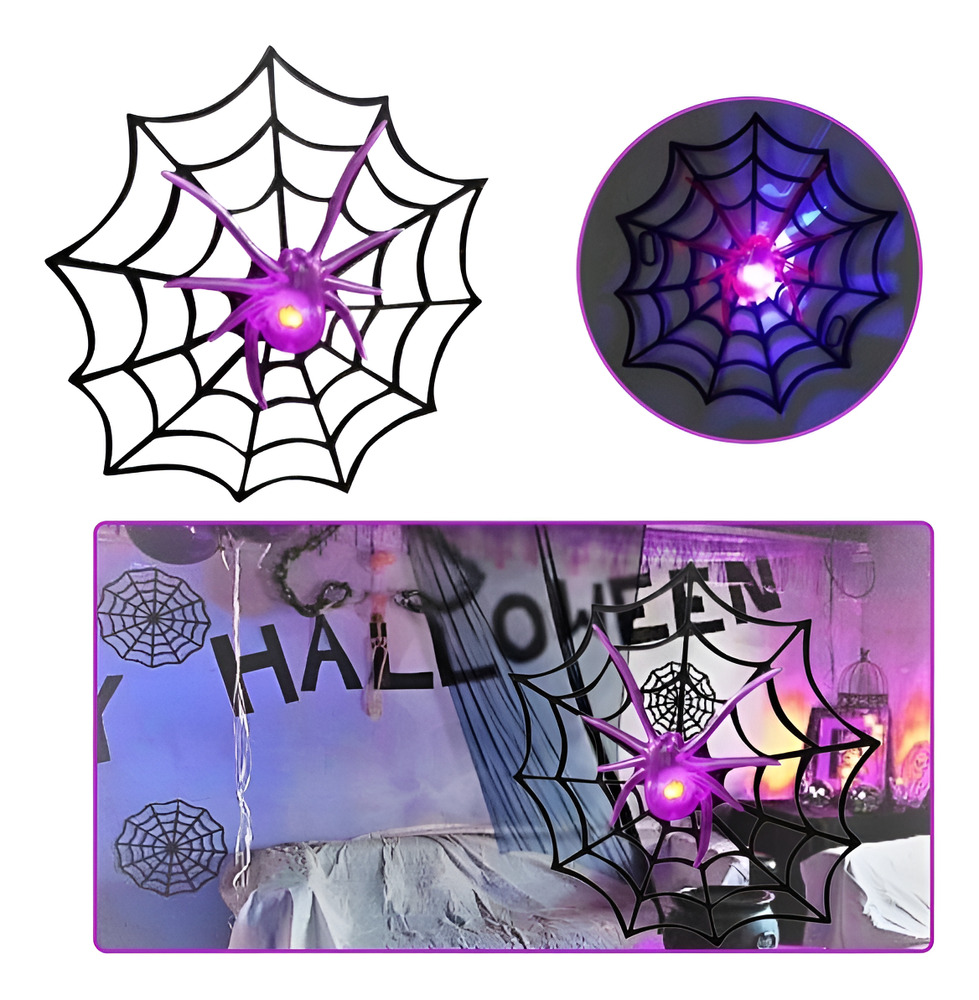 Telaraña Con Araña Led / Para Decoración Fiesta Halloween