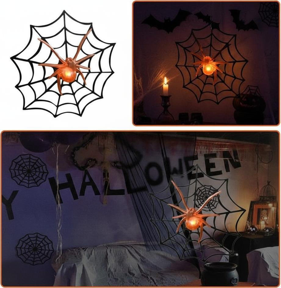 Red Telaraña Con Araña Led
