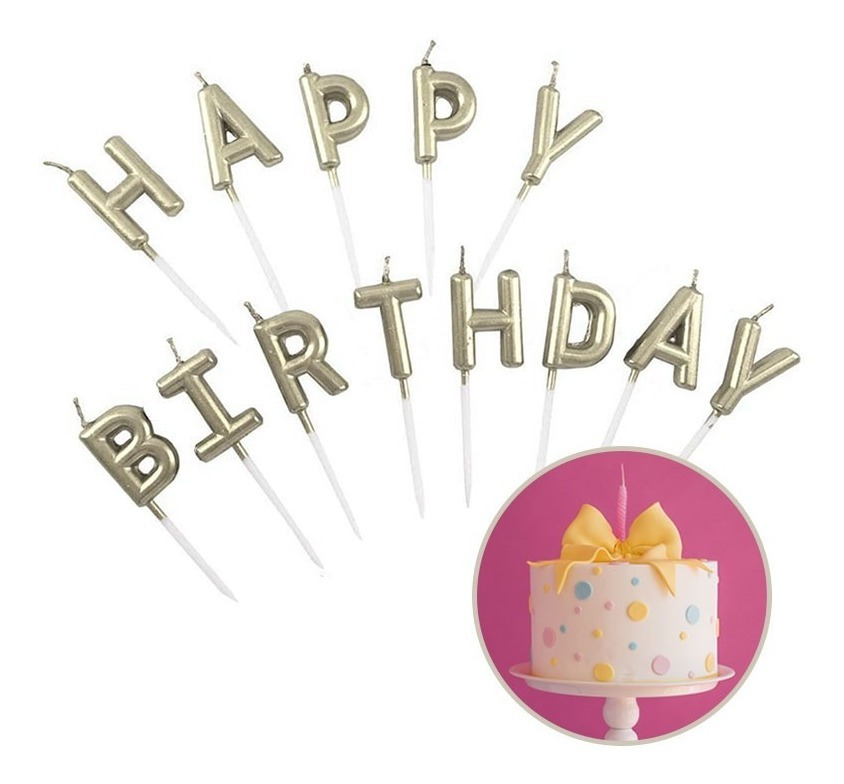 Velas Para Decoración Torta Frase Letras ( Happy Birthday )