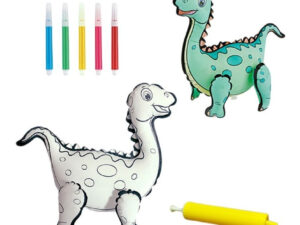 Set Globo Plástico Dinosaurio 3 D / Para Pintar + Plumones