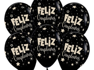 Pack 6 Uds Globos De Látex Frase Feliz Cumpleaños Estrellas