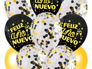 Set Globos Decoración 10 Uds Feliz Año Nuevo Látex + Confeti