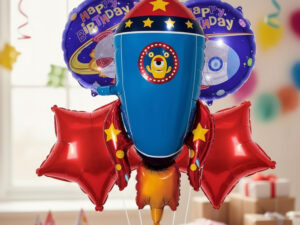 Set De Globos Decoración 5 Uds Cohete Espacial + Estrellas