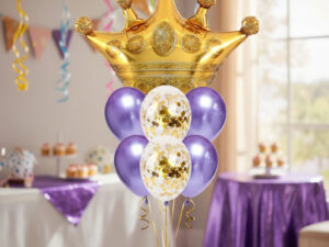 Set De Globos Decoración 7 Uds Corona + Globos Látex Cromado
