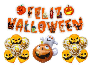 Set De Globos Decoración 13 Uds Motivo Halloween + Guirnalda