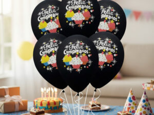 Pack 6 Uds Globos De Látex / Frase Feliz Cumpleaños Cupcake